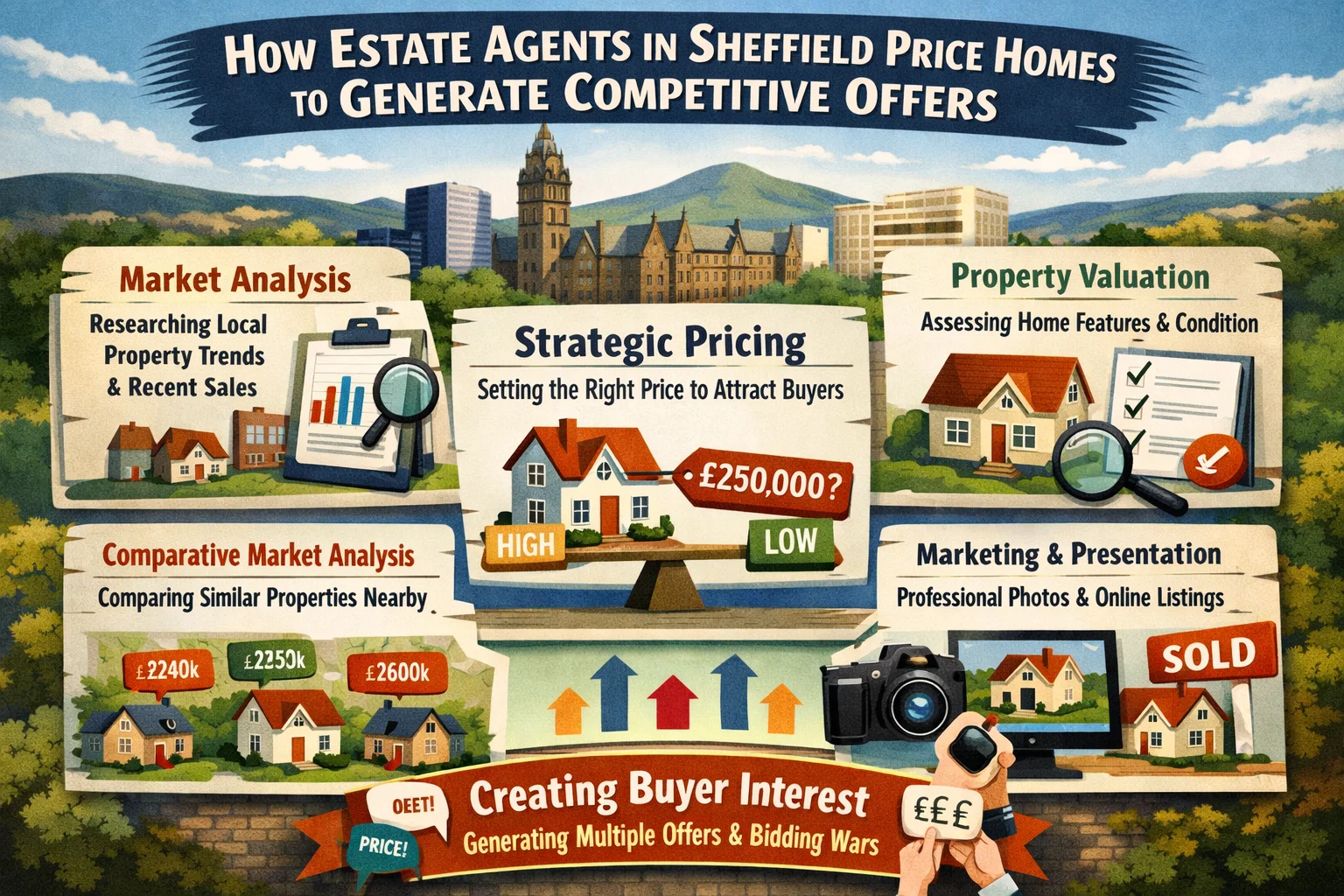 Pricing a property correctly is one of the most influential factors in securing strong buyer interest. For homeowners, landlords and investors in Sheffield, estate agents use a combination of local market knowledge, buyer data and strategic timing to price homes in a way that encourages competitive offers rather than prolonged negotiations.