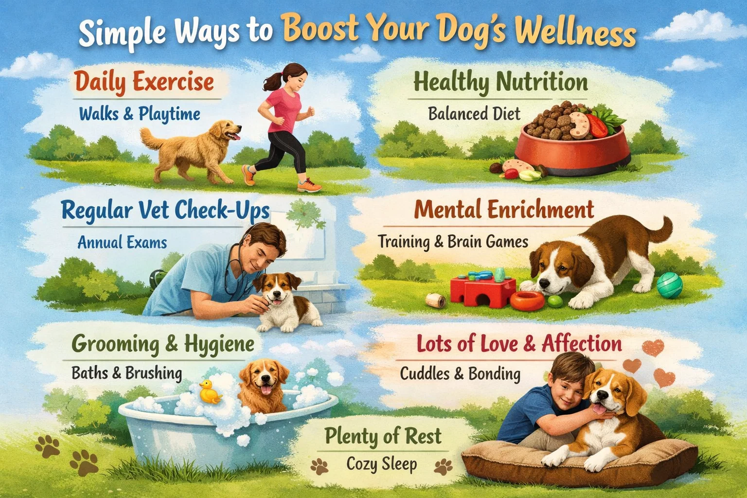 Boosting your dog’s wellness doesn’t require expensive programs or complicated routines, it’s really about consistency and genuine care. By implementing these simple yet effective strategies, you can significantly enhance your dog’s quality of life and potentially extend their years by your side. Focus on providing balanced nutrition, regular exercise, preventive healthcare, mental stimulation, a safe environment, and emotional support. Remember that every dog is unique, so tailor these approaches to your individual pet’s needs and personality, and always consult with your veterinarian when making significant changes to their care routine.