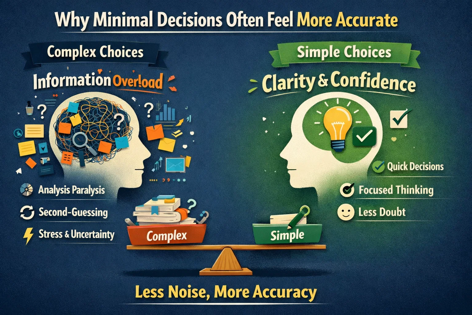 Minimal decisions often feel more accurate because they reduce cognitive load, cut through option overload, and lean on the brain’s preference for clear, fluent explanations. When the signals are strong and the stakes are reasonable, simplicity can genuinely improve outcomes not just your confidence.